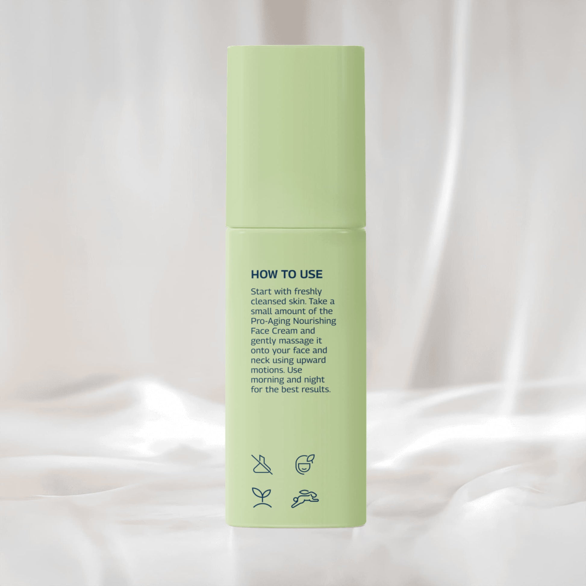 Start with freshly cleansed skin. Take a small amount of the Pro-Aging Nourishing Face Cream and gently massage it onto your face and neck using upward motions. Use morning and night for the best results.