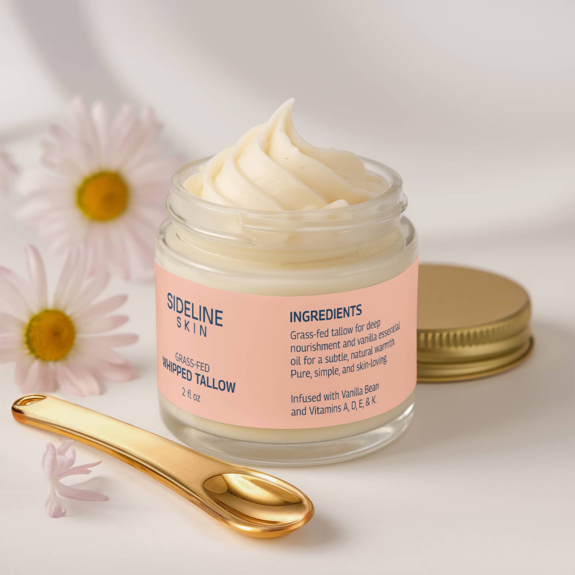 Grass-fed tallow for deep nourishment and vanilla essential oil for a subtle, natural warmth. Pure, simple, and skin-loving.